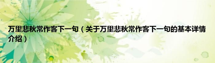 本文关于万里悲秋常作客下一句的基本详情介绍就讲解完毕,希望对大家有所帮助。