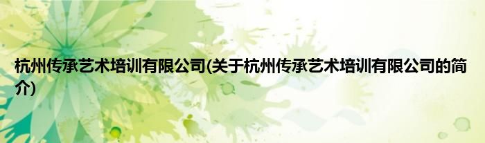 本文关于杭州传承艺术培训有限公司的简介就讲解完毕,希望对大家有所帮助。