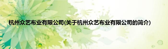 本文关于杭州众艺布业有限公司的简介就讲解完毕,希望对大家有所帮助。