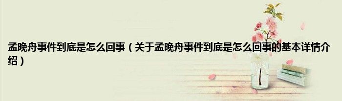 本文关于孟晚舟事件到底是怎么回事的基本详情介绍就讲解完毕,希望对大家有所帮助。