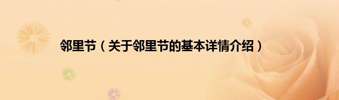 1、邻里节,是关于邻居之间的一个节日,通常是以居住在附近的左邻右舍为活动主体,以促进邻里和谐、推动邻居之间的互动、倡导互帮互助为活动主旨。