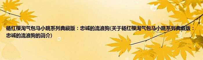 杨红樱淘气包马小跳系列典藏版:忠诚的流浪狗(关于杨红樱淘气包马小跳系列典藏版:忠...