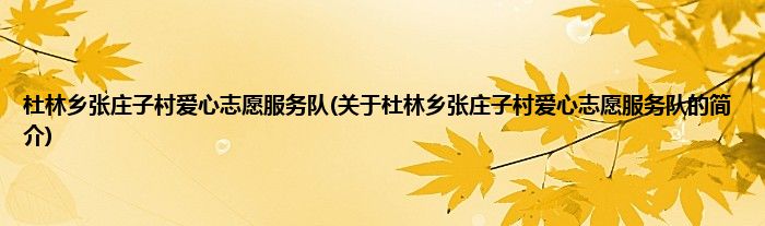 本文关于杜林乡张庄子村爱心志愿服务队的简介就讲解完毕,希望对大家有所帮助。