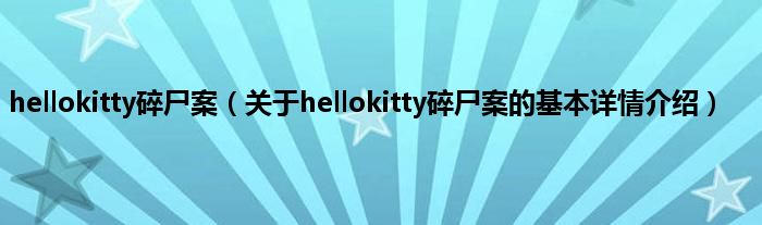 本文关于hellokitty碎尸案的基本详情介绍就讲解完毕,希望对大家有所帮助。