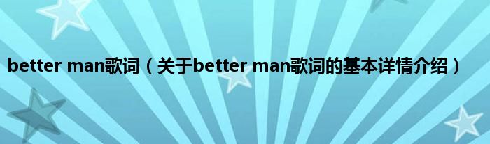本文关于better man歌词的基本详情介绍就讲解完毕,希望对大家有所帮助。