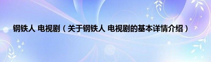 本文关于钢铁人 电视剧的基本详情介绍就讲解完毕,希望对大家有所帮助。