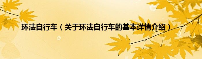 本文关于环法自行车的基本详情介绍就讲解完毕,希望对大家有所帮助。