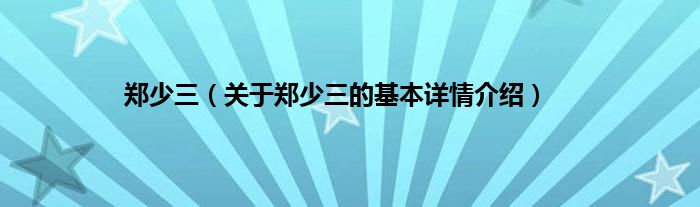本文关于郑少三的基本详情介绍就讲解完毕,希望对大家有所帮助。