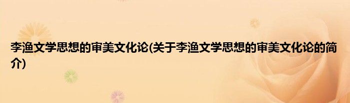 本文关于李渔文学思想的审美文化论的简介就讲解完毕,希望对大家有所帮助。