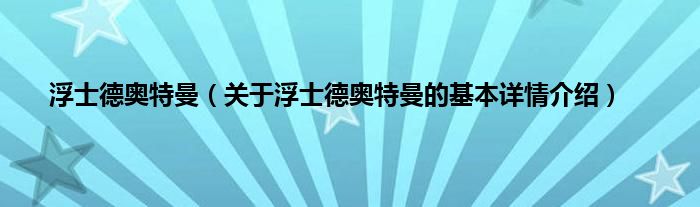 浮士德奥特曼(关于浮士德奥特曼的基本详情介绍)