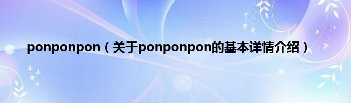 本文关于ponponpon的基本详情介绍就讲解完毕,希望对大家有所帮助。