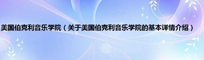 本文关于美国伯克利音乐学院的基本详情介绍就讲解完毕,希望对大家有所帮助。