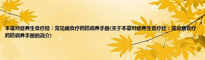 本文关于本草对症养生食疗经:常见病食疗药膳调养手册的简介就讲解完毕,希望对大家有所帮助。