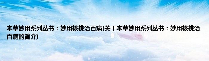 本文关于本草妙用系列丛书:妙用核桃治百病的简介就讲解完毕,希望对大家有所帮助。