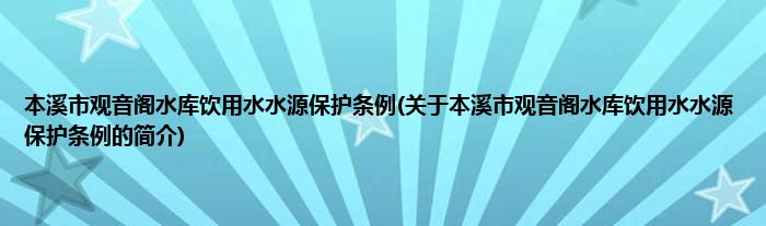 本溪市观音阁水库饮用水水源保护条例(关于本溪市观音阁水库饮用水水源保护条例的简介...