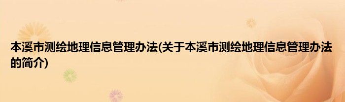 大家好,本溪市测绘地理信息管理办法,关于本溪市测绘地理信息管理办法的简介很多人还不知道,现在让我们一起来看看吧!