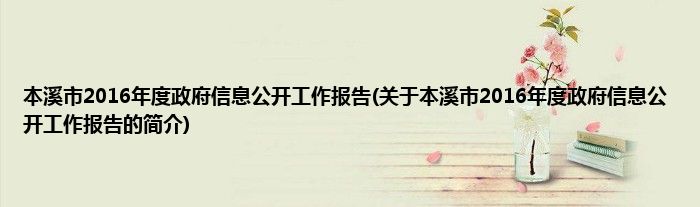 大家好,本溪市2016年度政府信息公开工作报告,关于本溪市2016年度政府信息公开工作报告的简介很多人还不知道,现在让我们一起来看看吧!