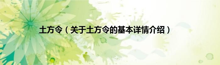 大家好我是小蝌蚪,土方令,关于土方令的基本详情介绍很多人还不知道,那么现在让我们一起来看看吧!