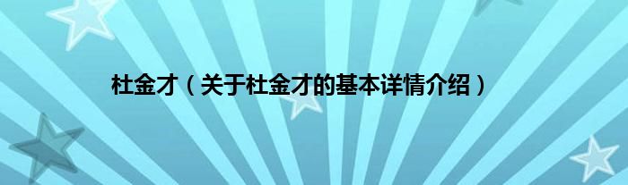 本文关于杜金才的基本详情介绍就讲解完毕,希望对大家有所帮助。