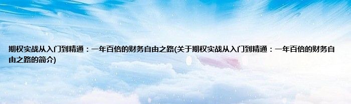 本文关于期权实战从入门到精通:一年百倍的财务自由之路的简介就讲解完毕,希望对大家有所帮助。
