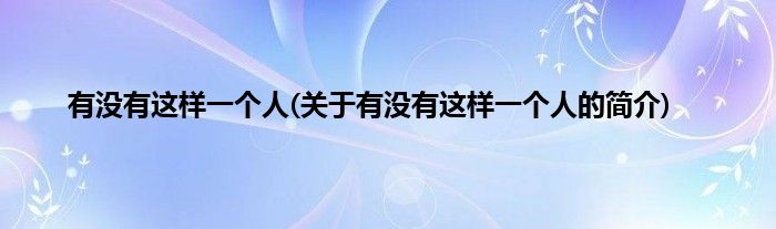 大家好,有没有这样一个人,关于有没有这样一个人的简介很多人还不知道,现在让我们一起来看看吧!