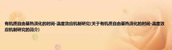 有机质自由基热演化的时间-温度效应机制研究(关于有机质自由基热演化的时间-温度效应机制研究的简介)