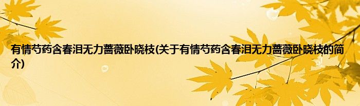 本文关于有情芍药含春泪无力蔷薇卧晓枝的简介就讲解完毕,希望对大家有所帮助。