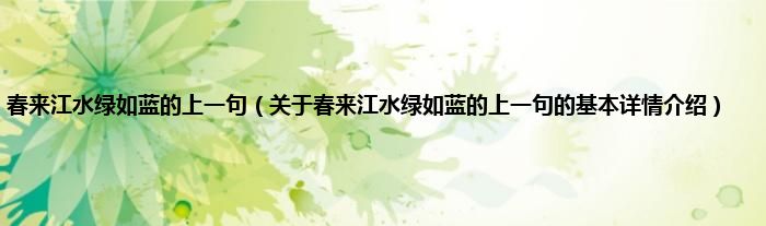 本文关于春来江水绿如蓝的上一句的基本详情介绍就讲解完毕,希望对大家有所帮助。