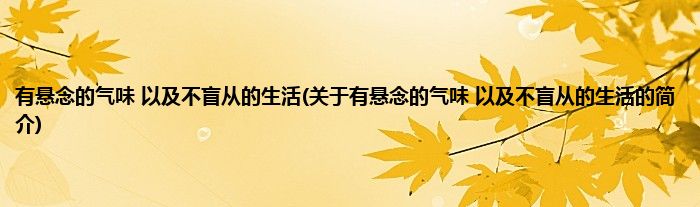 大家好,有悬念的气味,以及不盲从的生活,关于有悬念的气味,以及不盲从的生活的简介很多人还不知道,现在让我们一起来看看吧!