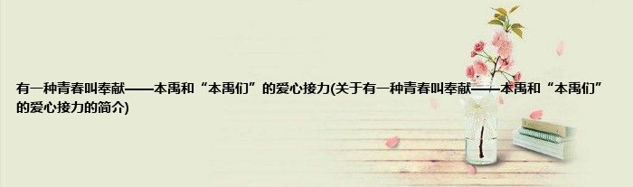 本文关于有一种青春叫奉献——本禹和“本禹们”的爱心接力的简介就讲解完毕,希望对大家有所帮助。