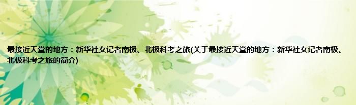 本文关于最接近天堂的地方:新华社女记者南极、北极科考之旅的简介就讲解完毕,希望对大家有所帮助。