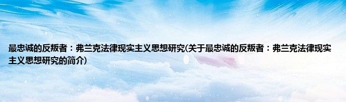 本文关于最忠诚的反叛者:弗兰克法律现实主义思想研究的简介就讲解完毕,希望对大家有所帮助。