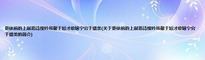 大家好,更依前韵上献恶诗搜吟虽罄于短才歌咏宁穷于盛美,关于更依前韵上献恶诗搜吟虽罄于短才歌咏宁穷于盛美的简介很多人还不知道,现在让我们一起来看看吧!