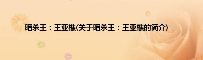本文关于暗杀王:王亚樵的简介就讲解完毕,希望对大家有所帮助。