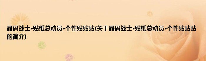 大家好,晶码战士·贴纸总动员·个性贴贴贴,关于晶码战士·贴纸总动员·个性贴贴贴的简介很多人还不知道,现在让我们一起来看看吧!