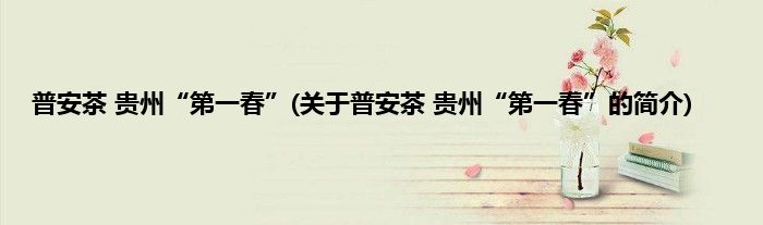 本文关于普安茶,贵州“第一春”的简介就讲解完毕,希望对大家有所帮助。