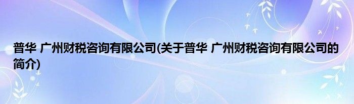 本文关于普华 广州财税咨询有限公司的简介就讲解完毕,希望对大家有所帮助。