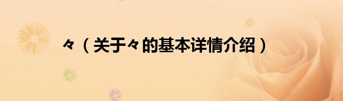 本文关于々的基本详情介绍就讲解完毕,希望对大家有所帮助。