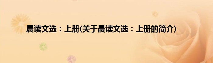 大家好,晨读文选:上册,关于晨读文选:上册的简介很多人还不知道,现在让我们一起来看看吧!