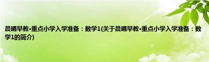 晨曦早教·重点小学入学准备:数学1(关于晨曦早教·重点小学入学准备:数学1的简介)