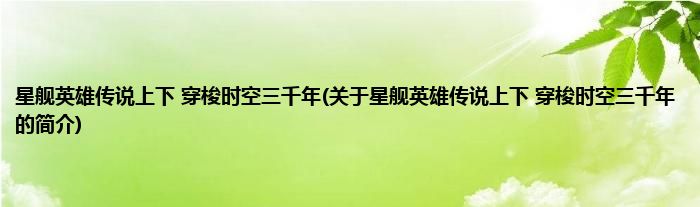 星舰英雄传说上下穿梭时空三千年(关于星舰英雄传说上下穿梭时空三千年的简介)
