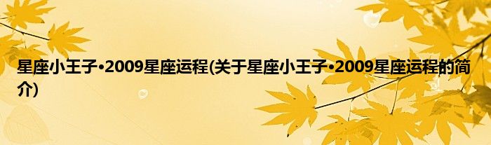 本文关于星座小王子·2009星座运程的简介就讲解完毕,希望对大家有所帮助。