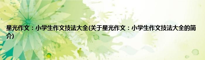 本文关于星光作文:小学生作文技法大全的简介就讲解完毕,希望对大家有所帮助。