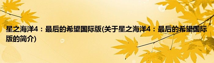 星之海洋4:最后的希望国际版(关于星之海洋4:最后的希望国际版的简介)