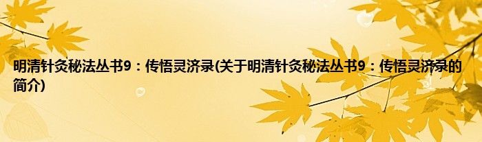 本文关于明清针灸秘法丛书9:传悟灵济录的简介就讲解完毕,希望对大家有所帮助。