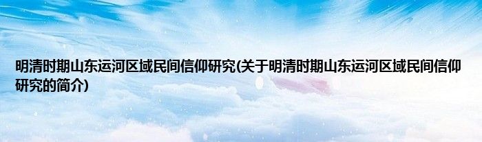 大家好,明清时期山东运河区域民间信仰研究,关于明清时期山东运河区域民间信仰研究的简介很多人还不知道,现在让我们一起来看看吧!