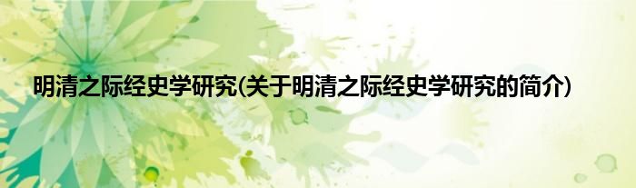 本文关于明清之际经史学研究的简介就讲解完毕,希望对大家有所帮助。
