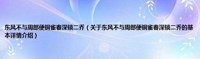 本文关于东风不与周郎便铜雀春深锁二乔的基本详情介绍就讲解完毕,希望对大家有所帮助。