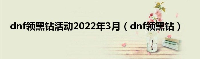 大家好,精选小编来为大家解答以上问题。dnf领黑钻活动2022年3月,dnf领黑钻很多人还不知道,现在让我们一起来看看吧!