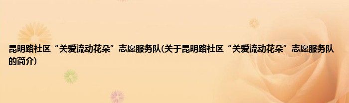 本文关于昆明路社区“关爱流动花朵”志愿服务队的简介就讲解完毕,希望对大家有所帮助。